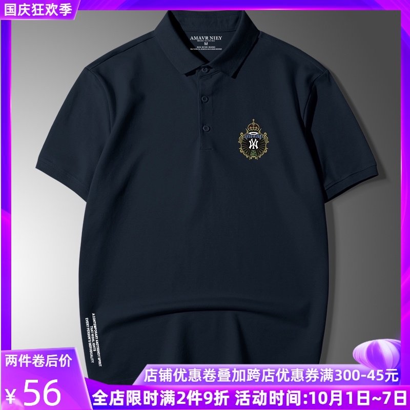 NY大码男装早秋新款翻领短袖T恤透气棉胖子休闲商务宽松POLO衫男热门设计联盟服务商