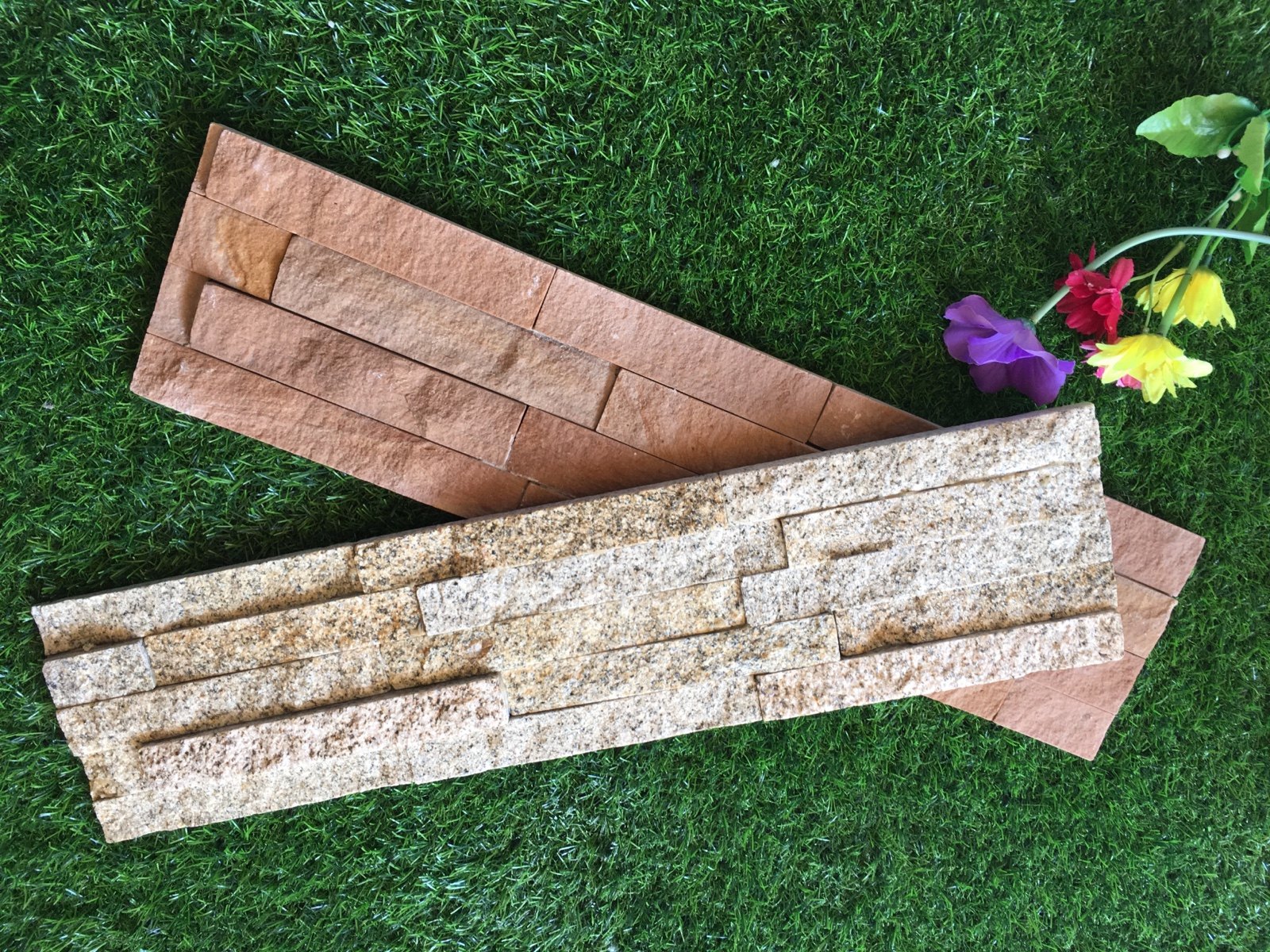 天然文化石 电视墙 背景墙 黄金麻5条粘接板别墅外墙砖户外围墙砖