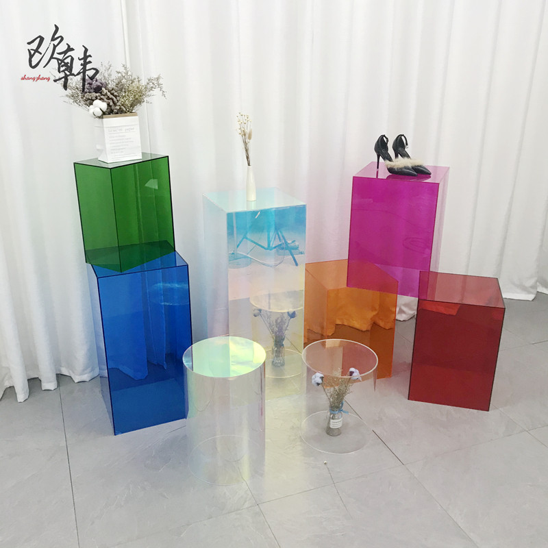 服装店展示架高低流水台橱窗透明四方台女装道具亚克力鞋包展示柜热门设计联盟服务商