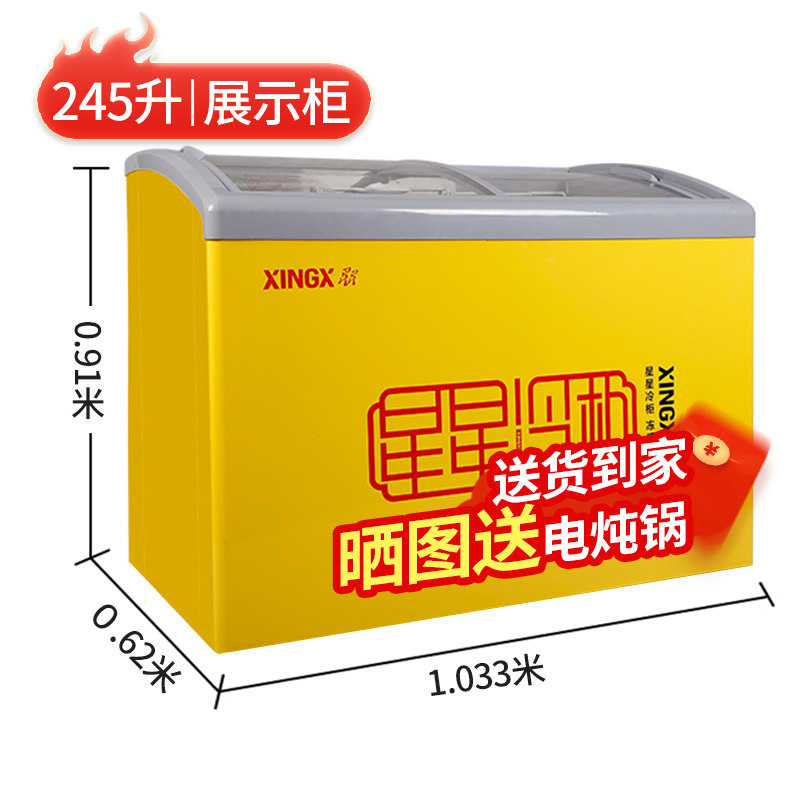 星星牌冰柜245升透明玻璃门全冷冻展示柜 商用卧式雪糕冰淇淋雪柜热门设计联盟服务商