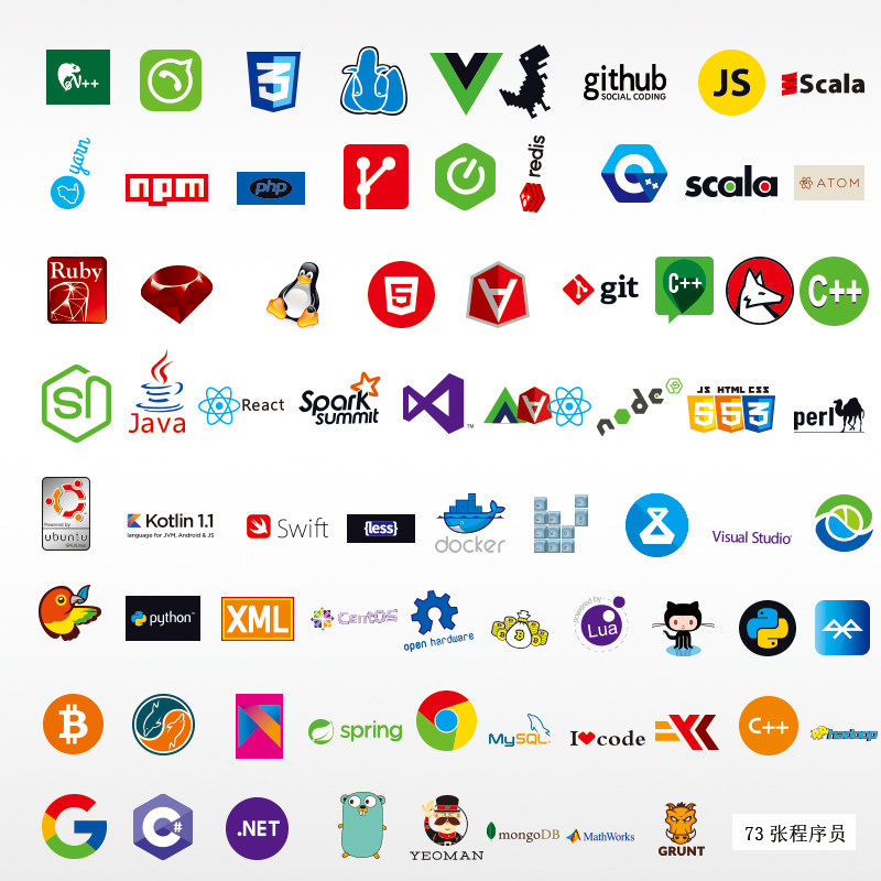 73张程序员软件贴画行李箱贴纸旅行箱笔记本电脑手机滑板贴画防水热门设计联盟服务商