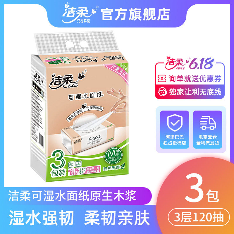 洁柔抽纸卫生纸3层120抽3包一提纸巾生活家用可湿水包邮热门设计联盟服务商