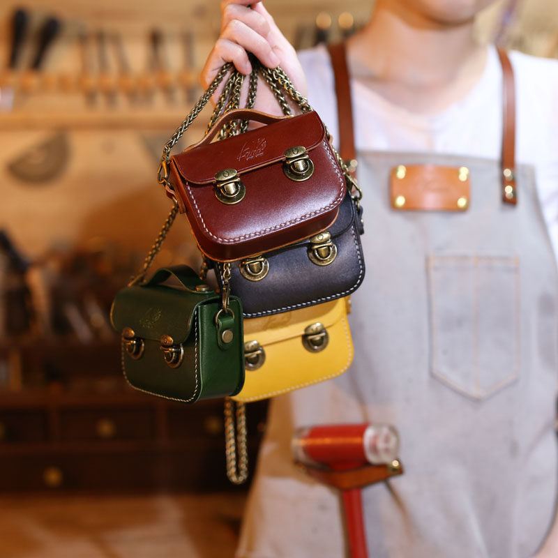 手缝小人国系列豆丁包手缝植鞣牛皮迷你挎包腰包头层手机包女斜挎热门设计联盟服务商