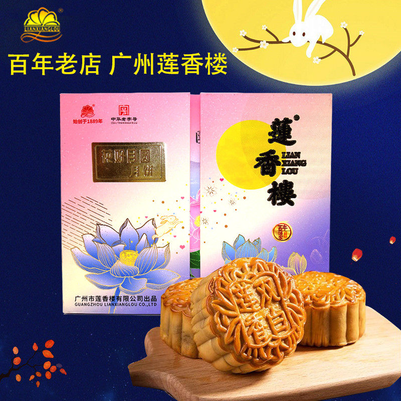 广州莲香楼月饼花好月圆1125g礼盒双黄莲蓉五仁豆沙 中秋送礼团购热门设计联盟服务商