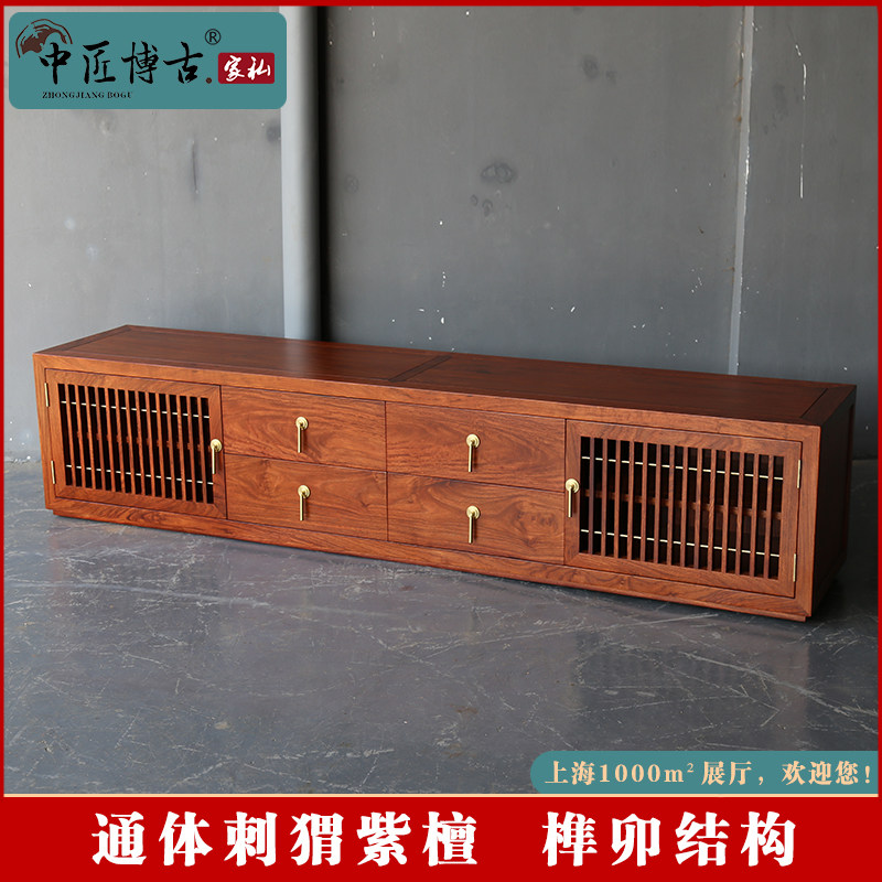 新中式电视柜刺猬紫檀红木家具客厅花梨木影视柜简约实木落地柜子热门设计联盟服务商