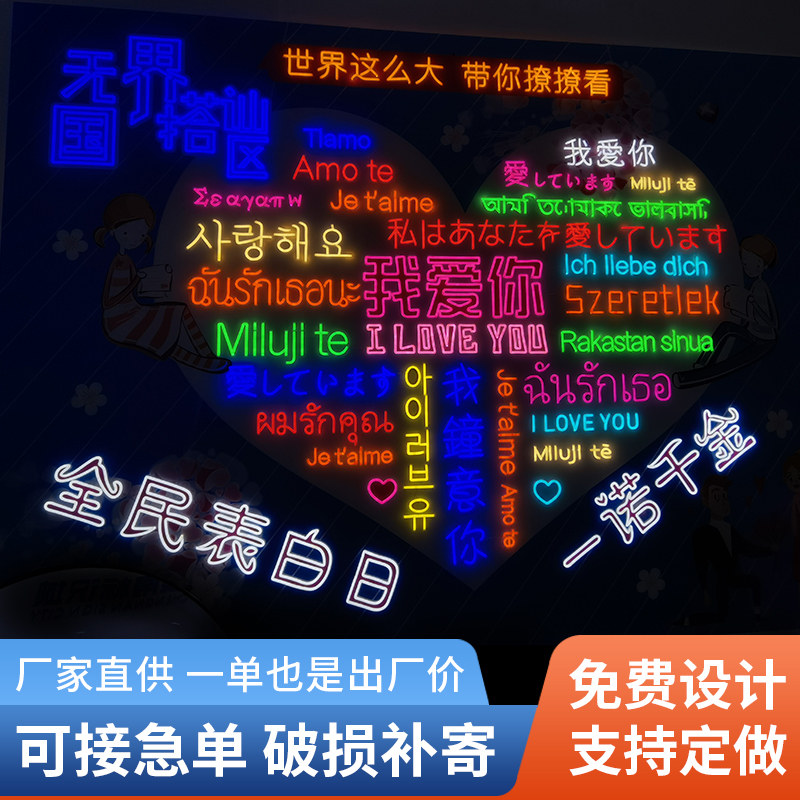 霓虹灯发光字定制酒吧餐饮店招牌 网红背景墙户外门头广告牌定做热门设计联盟服务商