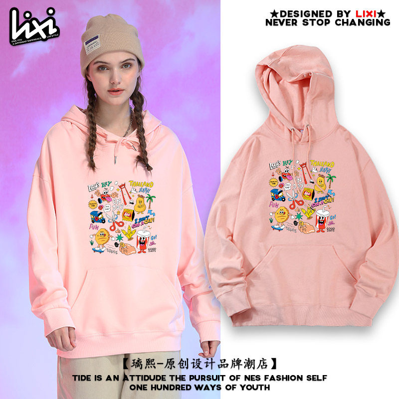 卡通贴图印花连帽卫衣女2022秋冬新款粉色甜美学院风长袖上衣bf潮热门设计联盟服务商