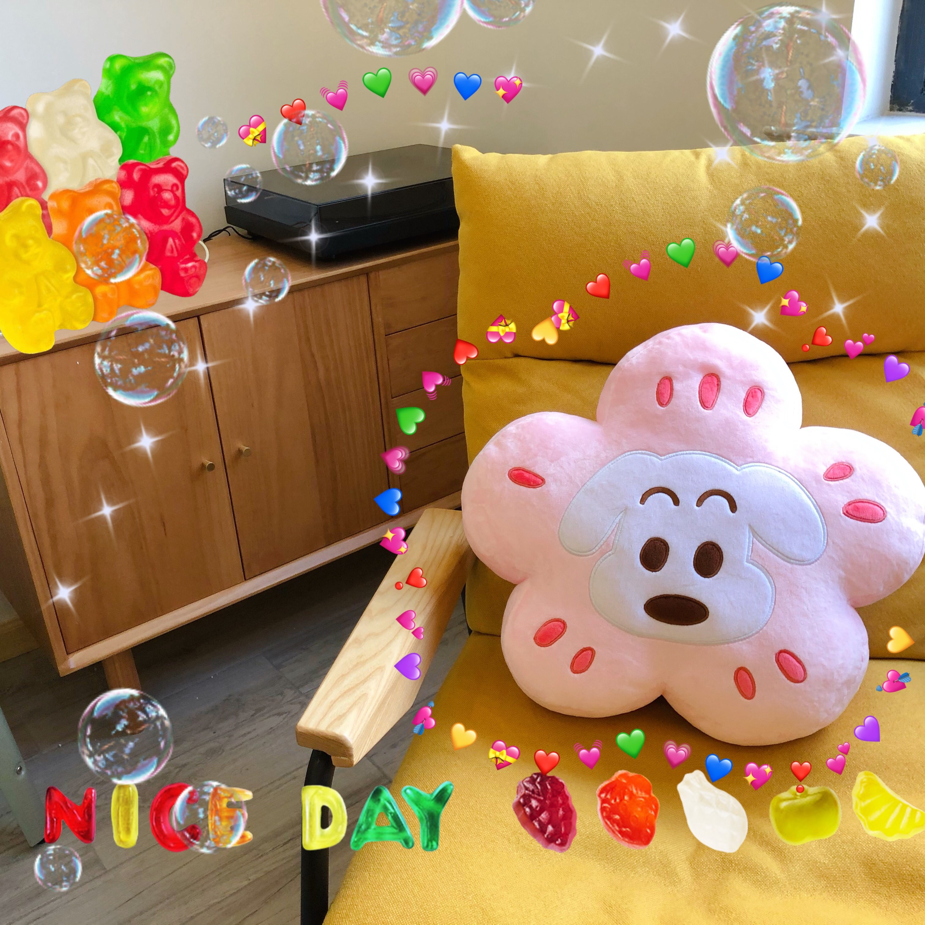 【富山商店】粉色樱花刺绣毛绒泡泡狗靠垫沙发装饰抱枕日式客厅热门设计联盟服务商