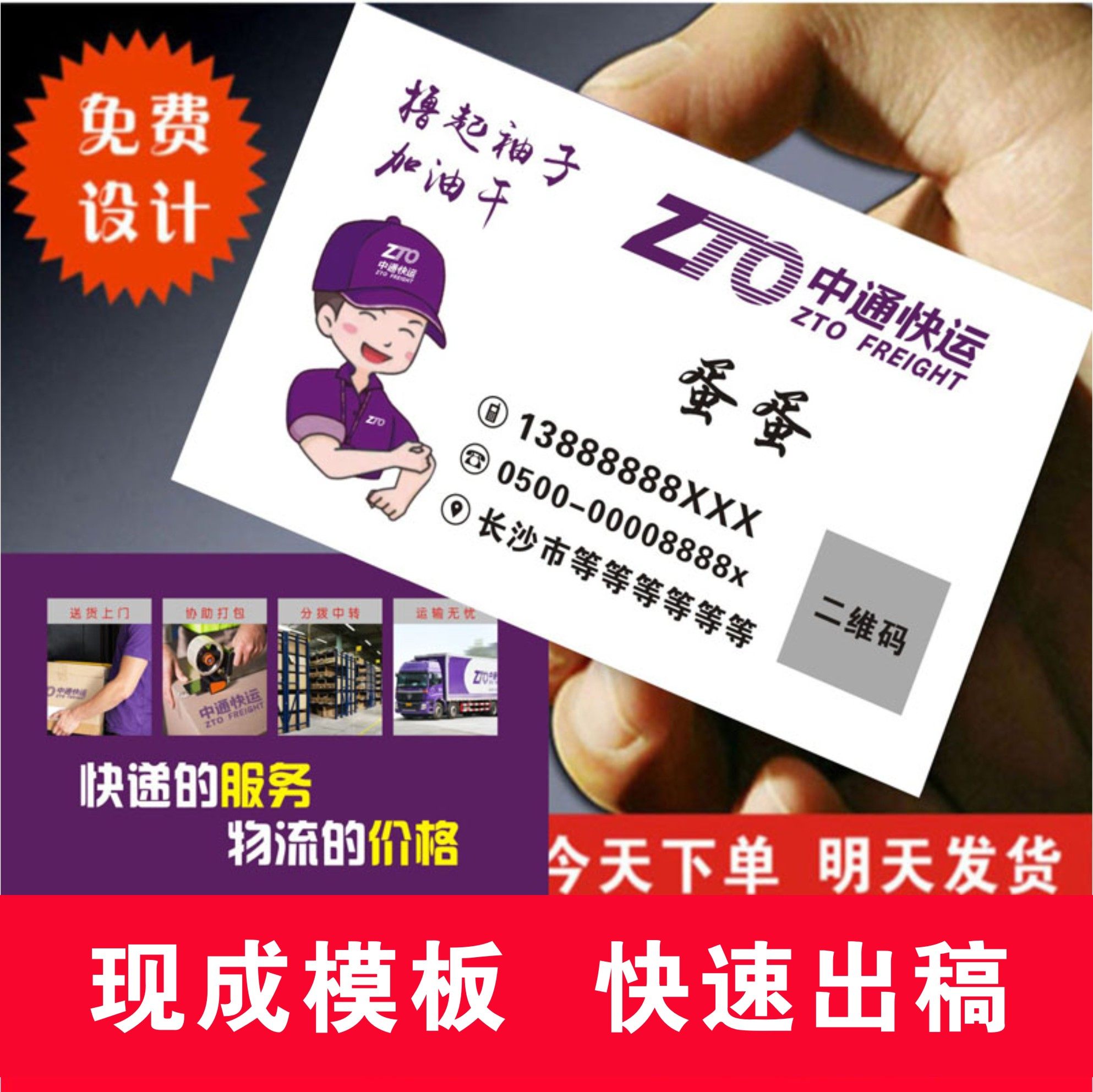 中通快运名片物流铜版纸防水二维码新款免费设计沛包邮覆膜货运热门设计联盟服务商