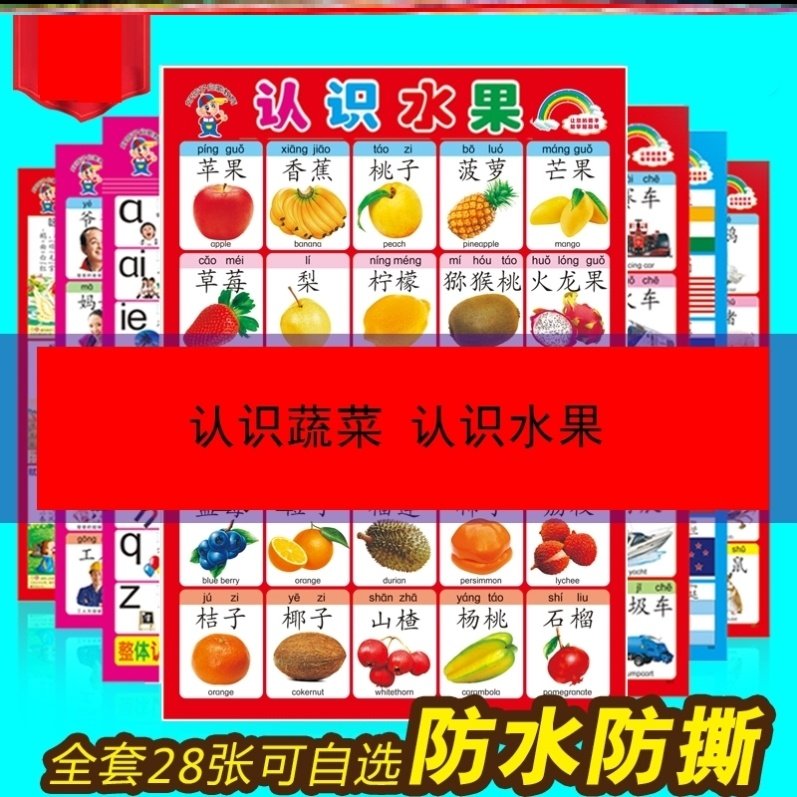 识字挂图墙画宝宝小孩子蔬菜学习学前墙壁认物贴图幼儿水果墙贴画热门设计联盟服务商