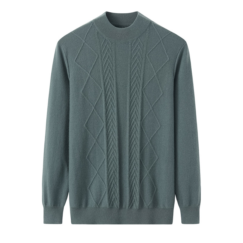 阿绒源100%山羊绒半高圆领夹条菱格设计男士套衫商务休闲保暖毛衣热门设计联盟服务商